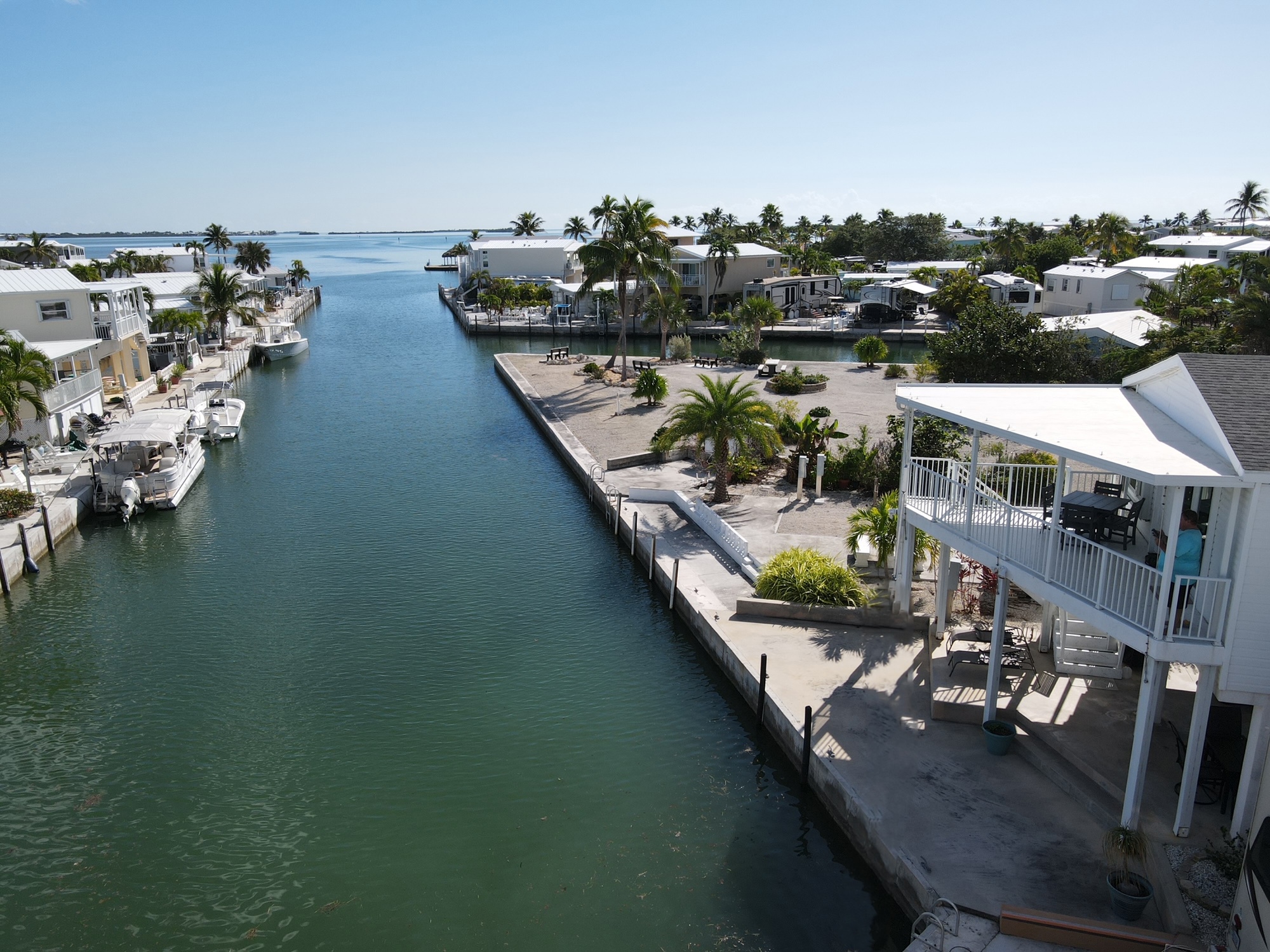 The Keys Island Villa in Venture Out Resort unit 354 is an 865 SF two-bedroom two-bathroom stilt home with 35’ of canal dock waterfrontage. Guests love the luxury feel from having a parking spot under the home, walking into the inviting custom kitchen with granite and experiencing the outstanding layout that provides rare comfort of two king bedrooms (one master) and the second bedroom have a second private bathroom. Dine inside, or outside on the upper patio or eat at the downstairs patio overlooking the waterfront! If you are lucky a manatee might even join you!